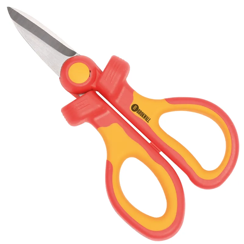 Descripción: Tijeras aisladas de electricista, diseñadas para cortar pequeños elementos como conductores o restos de materiales plásticos.